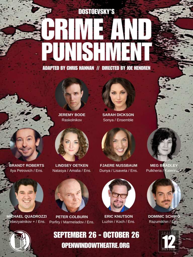 “For Open Window, a small company based in a suburban strip mall, to attempt such an ambitious offering as Crime and Punishment is impressive enough, but to have achieved such soaring success in every facet of the production, while introducing Chris Hannan’s powerful adaption of Dostoevsky’s work to our theatre community, is cause for celebration, and for securing tickets to see this striking work, sure to be remembered as one of the highlights of the theater season.“